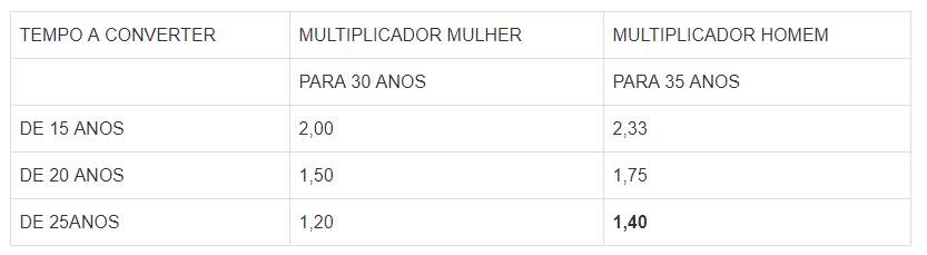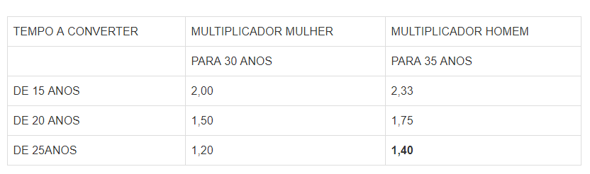 Existe, inclusive, uma tabela de multiplicadores para a conversão desse tempo de serviço especial em comum, como observamos abaixo, isto está no decreto 3.048/99, art. 70, e na IN 77/2015: