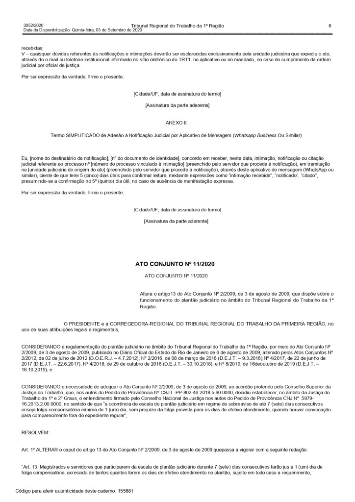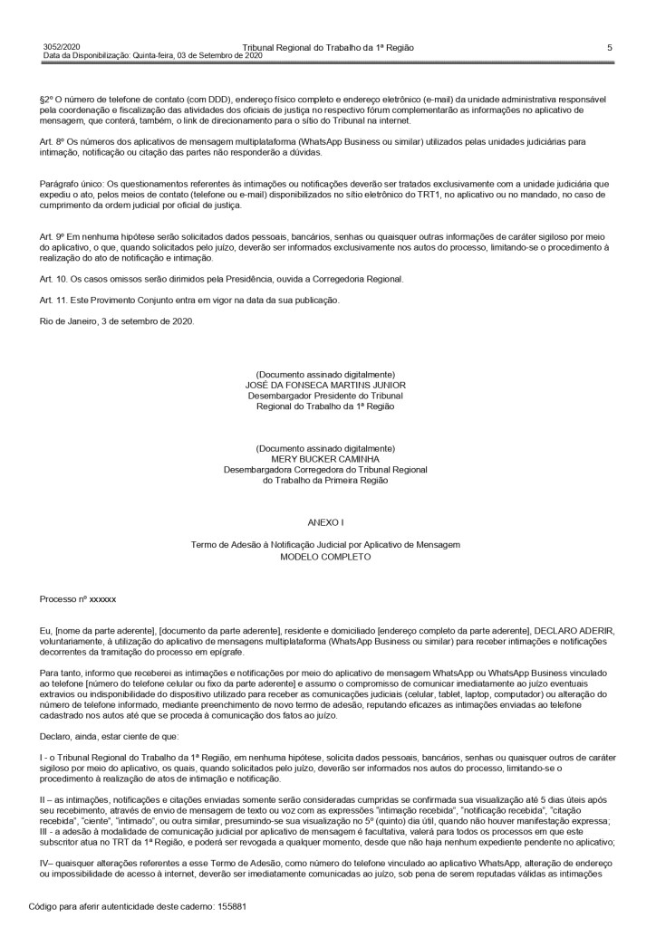Regulamentação do uso do WhatsApp para fins de intimação