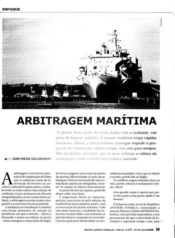 A Arbitragem no Mundo Moderno – Arbitragem Marítima