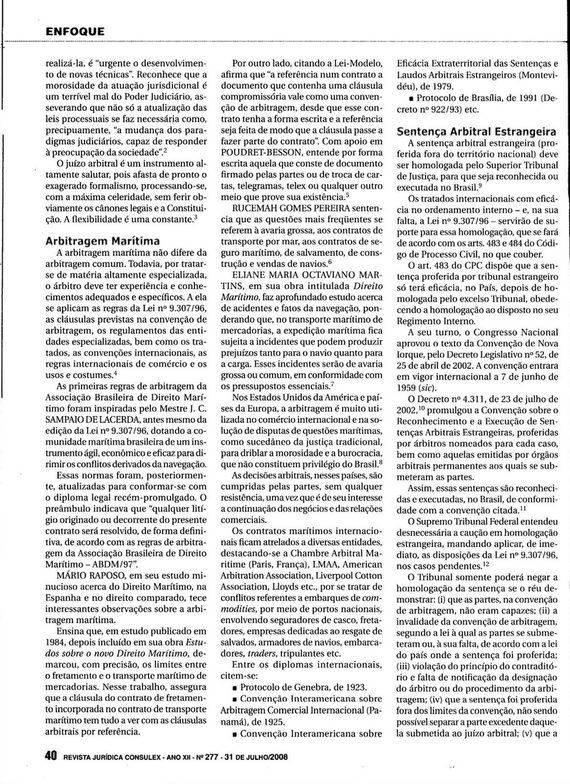 Uma justiça tardia violenta os direitos humanos, porque fere, brutalmente, a dignidade e, acima de tudo, sevicia a consciência humana. Conceitos de arbitragem, mediação ou conciliação, auto composição ou negociação direta. Evolução histórica da arbitragem. A arbitragem no Brasil. A arbitragem e a reforma do Judiciário. Breve análise da lei de arbitragem. Convenção arbitral. Arbitragem por equidade e de direito. Sentença Arbitral. Requisitos da sentença arbitral. Embargos de declaração. Nulidade da sentença. Execução da sentença. Proposta para solução do impasse: Execução extrajudicial – Decreto-lei 70/66. Código de Ética. Arbitragem Marítima. Sentença arbitral estrangeira. Conclusão.