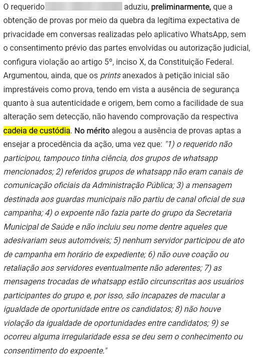 No âmbito eleitoral, a apresentação de provas digitais, como prints de redes sociais, e-mails ou mensagens de aplicativos, é cada vez mais comum em ações judiciais que envolvem denúncias de abuso de poder econômico, fake news e propaganda irregular. A decisão do TRE-ES reforça que, para que essas provas sejam aceitas e tenham validade jurídica, é essencial seguir rigorosamente os protocolos de verificação.