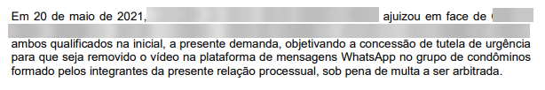A autora da ação alegou que teve sua privacidade violada quando vizinhos divulgaram imagens e áudios capturados de seu apartamento no grupo de mensagens do condomínio. A exposição ocorreu sob a justificativa de relatar incômodos sonoros provenientes de sua residência, mas, segundo a decisão, essa conduta foi considerada desnecessária, uma vez que havia alternativas menos constrangedoras para a resolução do conflito.