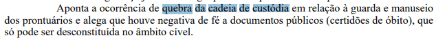 Ao STJ, a defesa da médica sustentou que todas as investigações e ações penais em curso se fundamentam em uma medida de busca e apreensão nula. Segundo a defesa, a decisão judicial permitiu a apreensão indiscriminada de prontuários médicos de todos os pacientes que morreram na UTI do hospital ao longo de sete anos, configurando uma indevida pescaria probatória (fishing expedition). Os advogados também apontaram violação ao princípio do non bis in idem, já que a médica teria sido sumariamente absolvida em uma das ações derivadas da mesma investigação – o que, na visão da defesa, deveria impedir a repetição de acusações.
