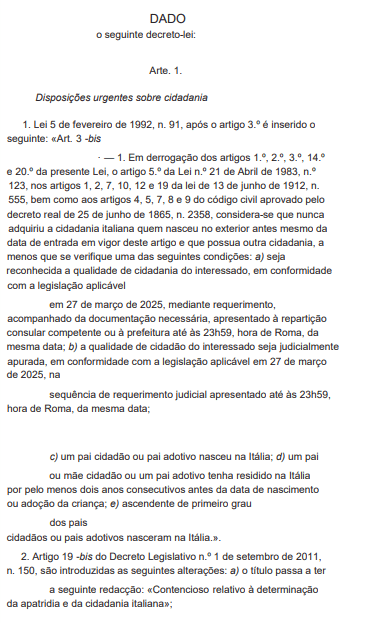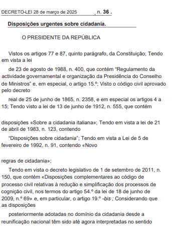 Nos últimos anos, a legislação sobre a cidadania italiana tem se tornado mais rigorosa, especialmente com o Decreto-Legge de 2025, que introduziu novas restrições ao reconhecimento da cidadania italiana para os nascidos no exterior. Esse decreto foi adotado em resposta ao crescente número de solicitações de cidadania, especialmente de descendentes de italianos que vivem fora do país.