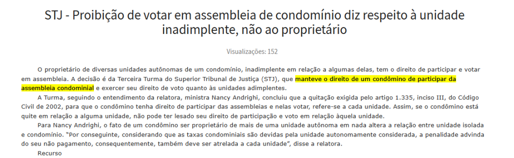 - Transparência e inclusão: Permitir que o inadimplente esteja presente favorece a transparência da gestão e pode até incentivar o adimplemento, ao se sentir parte do processo.