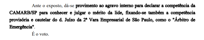 E também sustentou que o contrato continha uma cláusula que previa que qualquer conflito deveria ser resolvido em câmara arbitral.