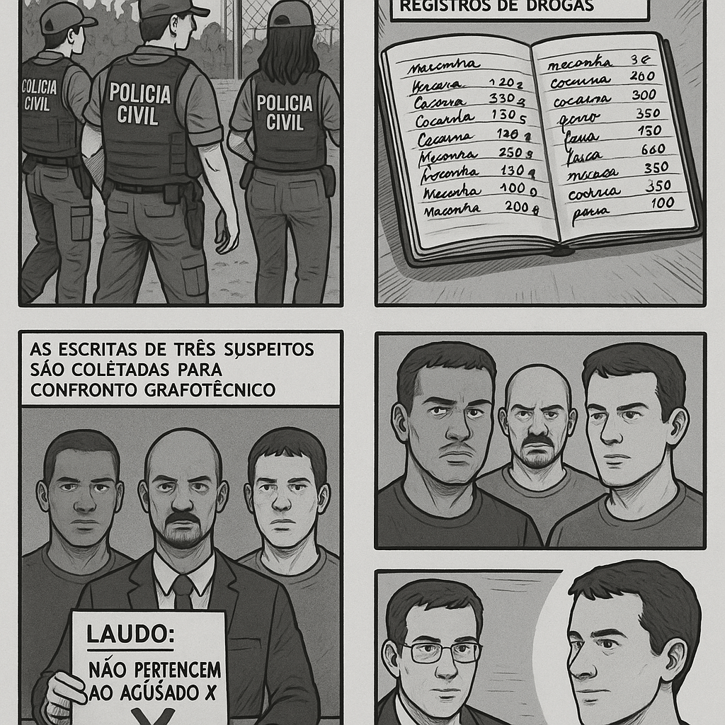 A perícia grafotécnica desempenha papel fundamental nas investigações criminais contemporâneas, especialmente nos casos de tráfico de drogas. As anotações manuscritas frequentemente apreendidas em operações policiais revelam informações valiosas para identificar autores, mapear a estrutura da organização criminosa e compreender a dinâmica das operações ilegais. Nesse cenário, documentos manuscritos — como cadernos de contabilidade, listas, bilhetes e mapas — são peças-chave que, se analisadas corretamente, corroboram a materialidade do crime e identificam seus autores.
