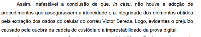 Essa conduta interrompeu o fluxo natural de preservação da prova digital — fase essencial prevista no artigo 158-A do Código de Processo Penal (CPP), que determina: