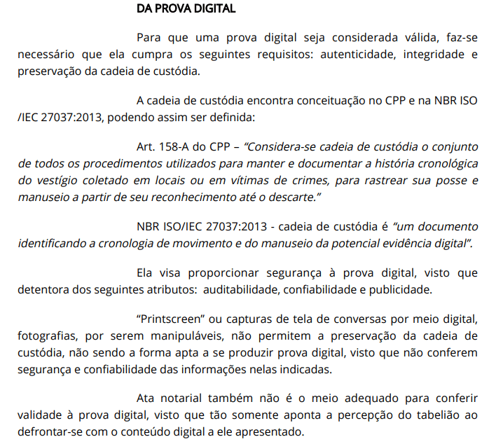 A decisão reforça o entendimento de que a simples juntada de capturas de tela ou registros não submetidos a critérios técnicos de preservação não assegura autenticidade nem confiabilidade, abrindo espaço para impugnações e desconsideração da prova.