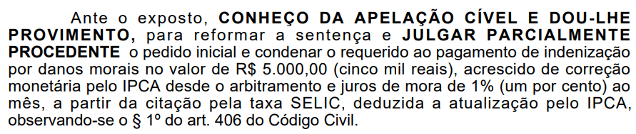 Ao analisar o recurso, o relator, desembargador Algomiro Carvalho Neto, reformou a sentença.