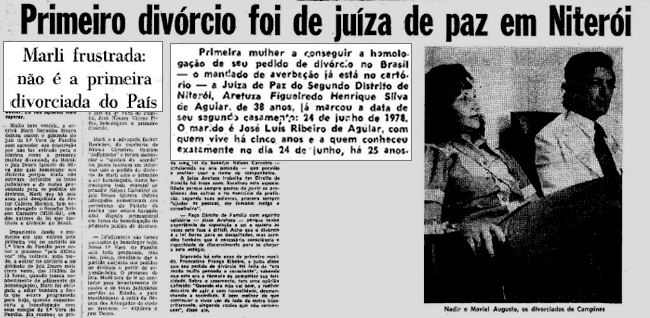 Arethuza de Aguiar conta que se considera uma “divorcista ferrenha” e que nunca se deixou ser desrespeitada por isso. Arethuza Figueiredo Henrique Silva de Aguiar. Esse é o nome da primeira mulher a se divorciar do país. Três dias depois da sanção da lei do divórcio, que ocorreu em 26 de dezembro de 1977, Arethuza e … Continue reading Primeira mulher divorciada do país defende o divórcio por acreditar no amor